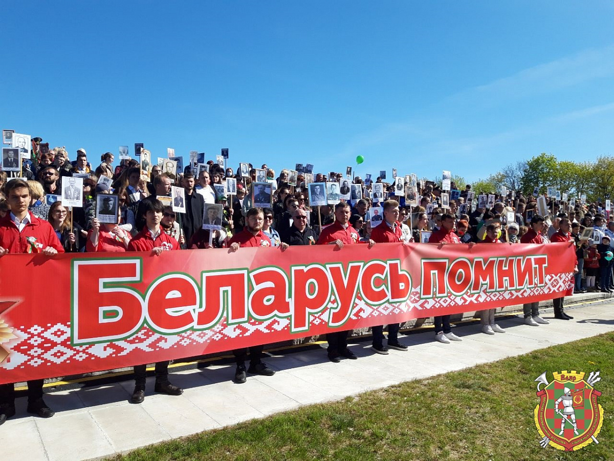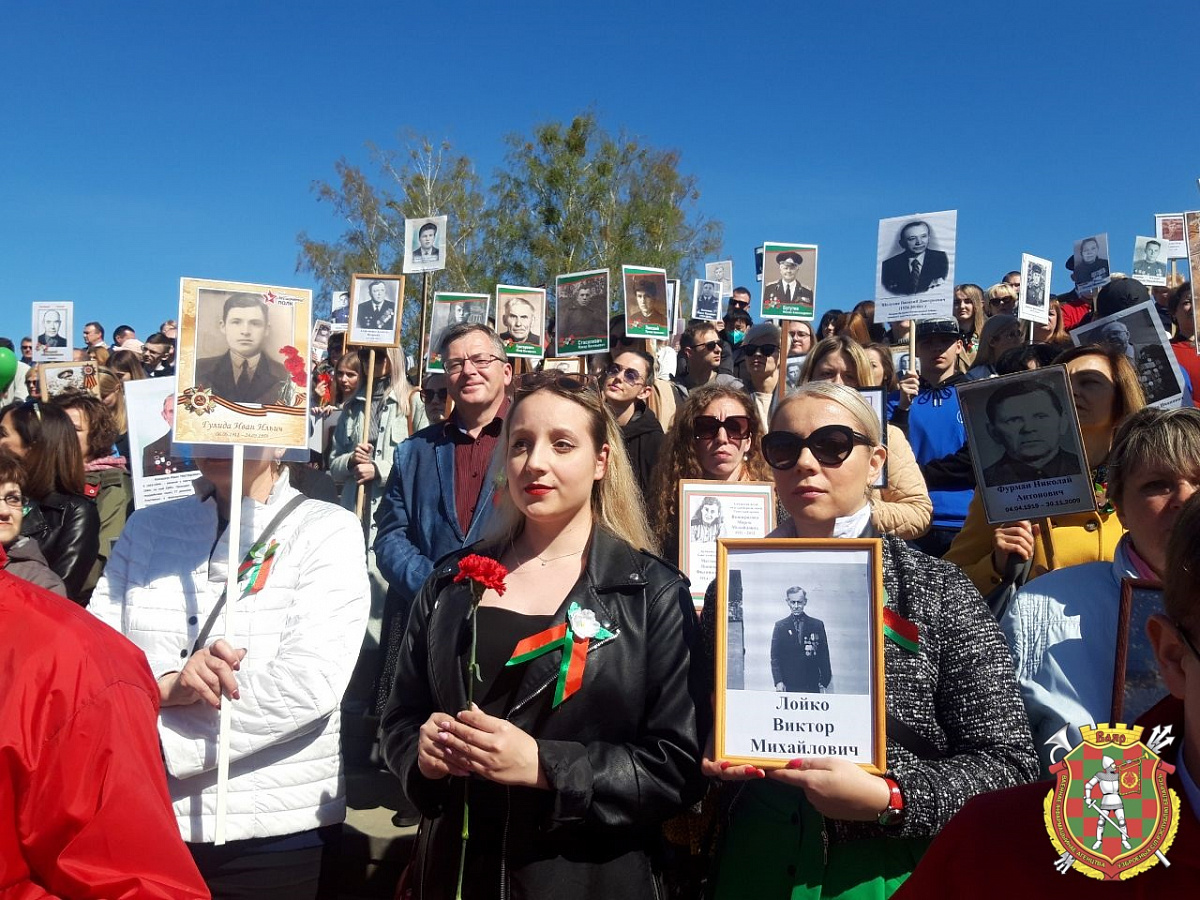 Праздничные мероприятия начались в 10.30 шествием поколений в рамках республиканской акции «Беларусь помнит». Нескончаемая людская река, над которой высились тысячи портретов погибших в годы Великой Отечественной войны дедов и прадедов, заняла один из крупнейших проспектов города и направилась к главной локации праздника. Впереди, вместе с руководством области и города, командованием ЗОК, шли ветераны Великой Отечественной войны и Вооруженных Сил, воины-интернационалисты, активисты Белорусского союза офицеров. В 11 часов на площадке у Кургана Славы стартовал торжественный митинг, посвященный 77-й годовщине Великой Победы.