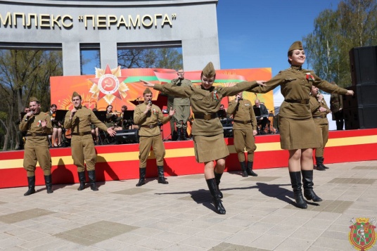 В столичном парке Победы военнослужащие белорусской армии 9 мая организовали праздник для белорусов.