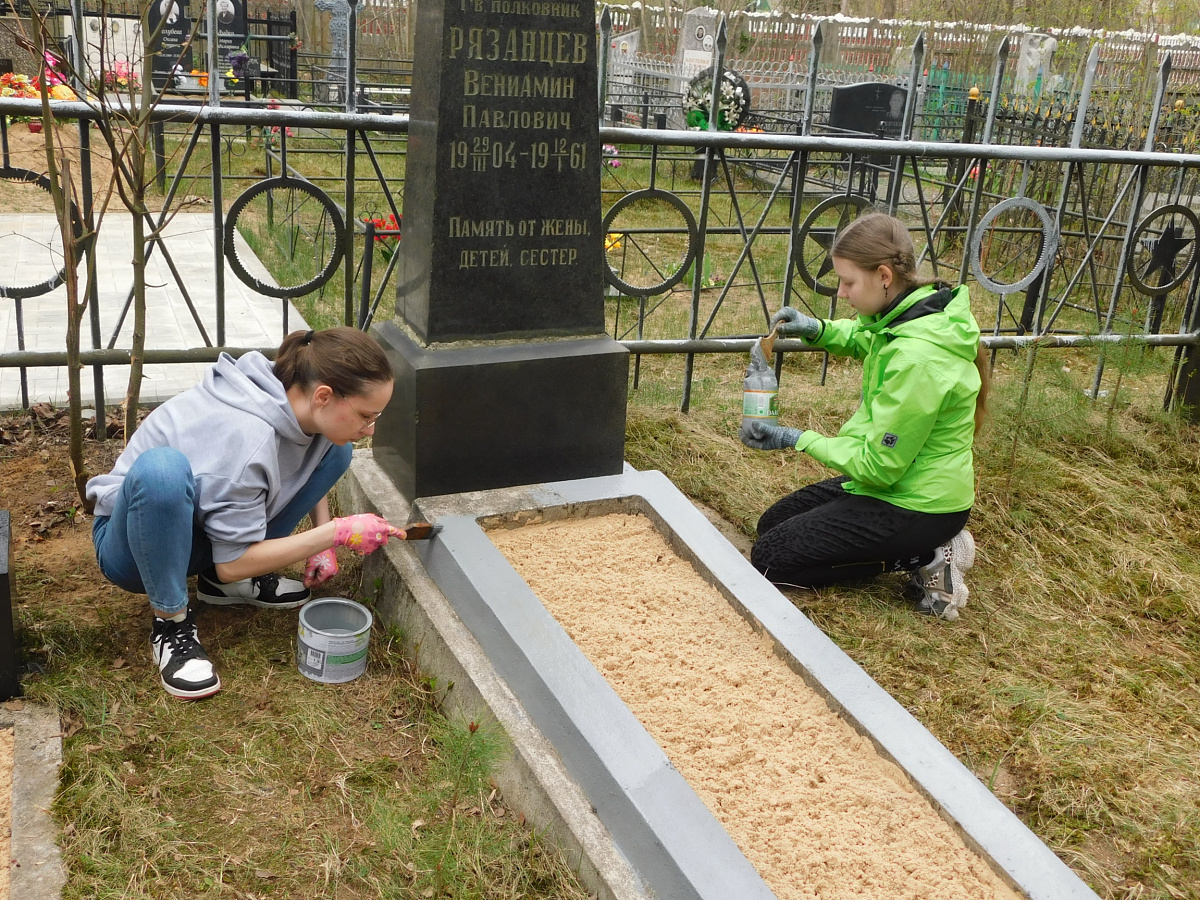 Участники акции убрали опавшую листву, осуществили прополку травы, вырезали поросль и окрасили ограду. Могилу ветерана украсили новые цветы. Ребята почтили память героя минутой молчания.