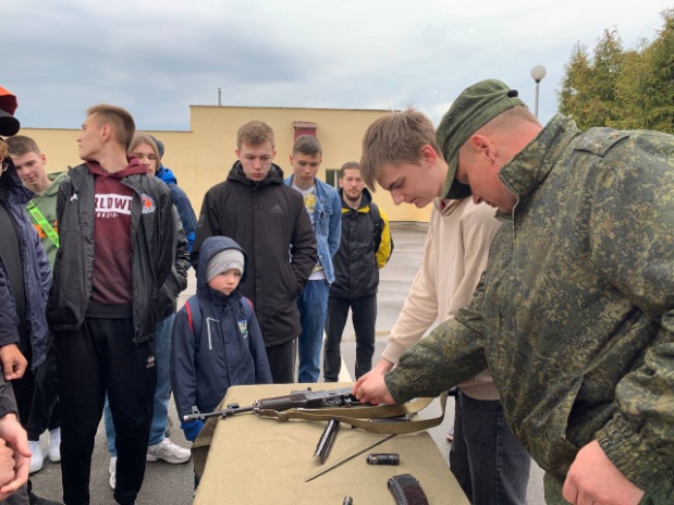 Сегодня рамках военно-патриотического воспитания молодежи и ознакомления с деятельностью Вооруженных Сил Республики Беларусь учащиеся филиала БНТУ «Жодинский государственный политехнический колледж» посетили 65-ю автомобильную бригаду, ознакомились с территорией военного городка, солдатской столовой, казарменным расположением, потренировались в сборке-разборке автомата АК-74, провели подгонку и одевание средств индивидуальной защиты − противогаза и общевойскового защитного комплекта и, конечно же, посетили музей транспортных войск.