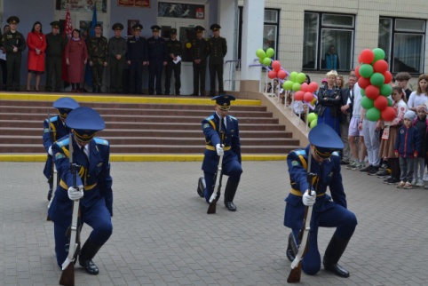 В рамках военно-патриотического воспитания военнослужащие Минской военной комендатуры во главе с заместителем командира по идеологической работе комендантского батальона капитаном Юрием Сахарчуком посетили ГУО «Средняя школа № 133» г. Минска. Военнослужащие провели творческое выступление, приуроченное к открытию военно-спортивных соревнований между учащимися Партизанского района города Минска. Дети ознакомились с современным оружием нашей армии.