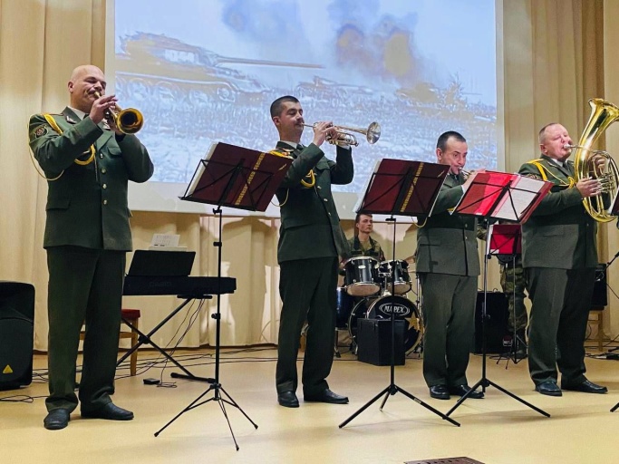 В концерте приняли участие Карина Бригадир и оркестр 120 омбр под руководством военного дирижера — начальника оркестра гвардии лейтенанта Константина Гурецкого.