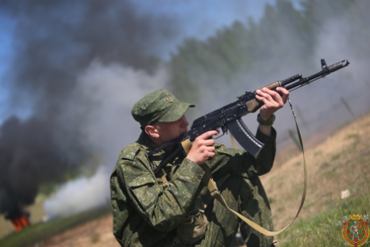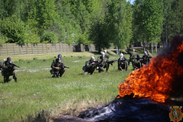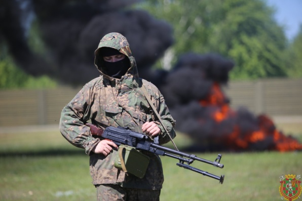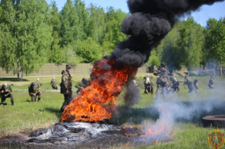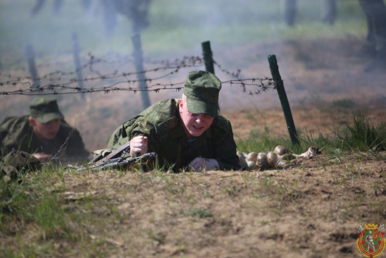 В в/ч 89417 под звуки взрывов и пулеметных очередей, крики «раненых» и гул военной техники, под прикрытием огня и дымовой завесы новобранцы соединений и воинских частей сил специальных операций преодолевали полосу препятствий с элементами психологической подготовки.