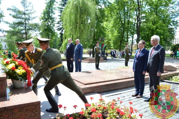 Участники церемонии возложили венки и цветы к подножию мемориала, на памятных плитах которого выбиты имена воинов и партизан, погибших при освобождении города Гродно и похороненных в братской могиле. Среди них − представители братских белорусского и российского народов: командир эскадрильи 46-го гвардейского ночного бомбардировочного авиационного полка Герой Советского Союза гвардии капитан Ольга Санфирова из Самары, секретарь Гродненского подпольного горкома комсомола, уроженка деревни Лаша Гродненского района белоруска Ольга Соломова и многие другие. Память павших в боях с немецко-фашистскими оккупантами собравшиеся почтили минутой молчания, эхом наполнили старинный парк залпы ружейного салюта подразделения 6-й отдельной гвардейской механизированной бригады.
