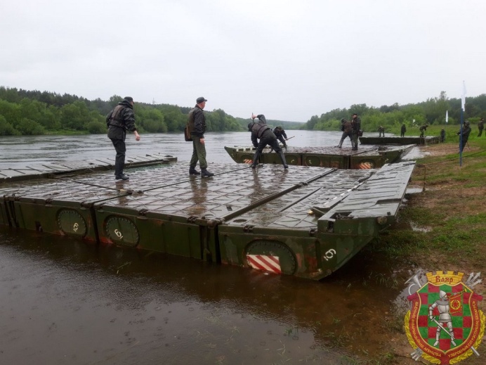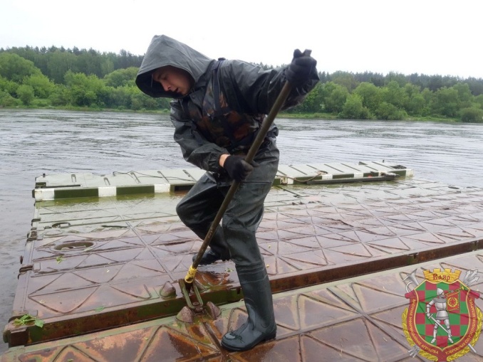 Одновременно проходит подготовка мотористов катера БМК-130 и отделения плавающих транспортеров ПТС-2. В лучшую сторону командование отмечает военнослужащего 557 ибр командира отделения — командира машины младшего сержанта Илью Лешенка, моториста гвардии рядового Андрея Ковзоловича из 188-й инженерной бригады.