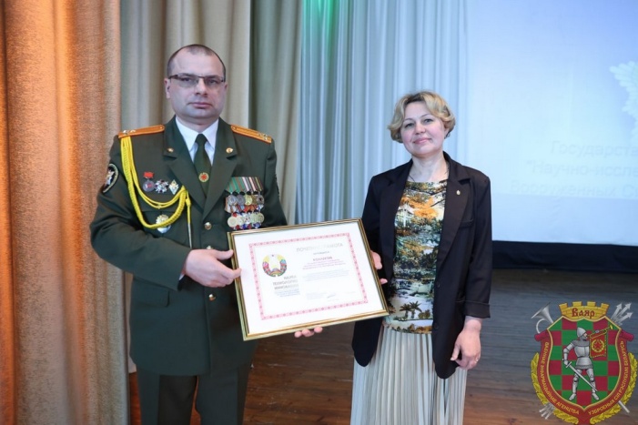 Сегодня состоялось торжественное собрание по случаю празднования 20-летнего юбилея со дня образования научно-исследовательского института Вооруженных Сил Республики Беларусь. С этим знаменательным событием личный состав института поздравил начальник Генерального штаба Вооруженных Сил – первый заместитель Министра обороны Республики Беларусь генерал-майор Виктор Гулевич. Наиболее отличившееся работники НИИ получили из рук Виктора Владимировича ценные подарки и грамоты.