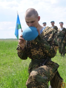 Новобранцы в/ч 89417 совершили свои первые прыжки с парашютом. Около 100 военнослужащих нового пополнения десантировались из самолета ТВС с высоты 800 метров.
