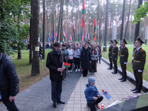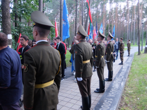 Военнослужащие 361-й базы охраны и обслуживания (центральных органов военного управления) приняли участие в патриотической акции «Молодежь помнит!», которая прошла в мемориальном комплексе «Благовщина» накануне Дня всенародной памяти жертв Великой Отечественной войны и геноцида белорусского народа. Среди почетных гостей мероприятия заместитель председателя Мингорисполкома Артём Цуран, начальник главного управления идеологической работы и по делам молодежи Мингорисполкома Ольга Чемоданова, глава администрации Заводского района Сергей Масляк и первый секретарь Минского городского комитета БРСМ Роман Бондарук.