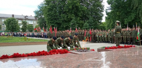 В скорбном и одновременно величественном месте в этот день у Вечного огня в городе Борисове собрались военнослужащие Северо-западного оперативного командования, представители местных органов власти, общественные организации, чтобы отдать дань памяти тем, кто погиб в те страшные годы, вспомнить всех, кто жертвовал собой, чтобы новые поколения жили в мире и согласии.