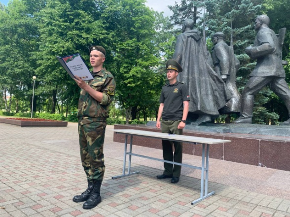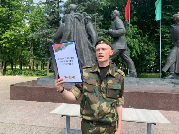 Военнослужащие 65-й автомобильной бригады как истинные патриоты своей страны и хранители ее исторической памяти в преддверии Дня Независимости Республики Беларусь торжественно приняли Кодекс чести защитника Отечества у монумента в честь советской матери-патриотки А.Ф. Куприяновой.