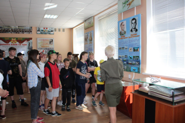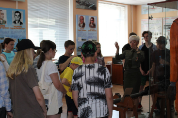 После гости воинской части переместились в музей им. Владимира Карвата — первого Героя Беларуси, где узнали историю не только самого Владимира Карвата, но и историю создания музея и развития в/ч 54804. Во время экскурсии, которая проходила в форме диалога, ученики задавали вопросы и принимали активное участие в мероприятии.