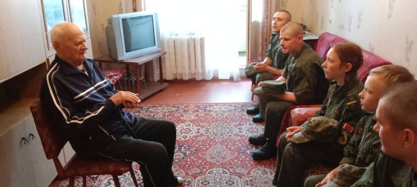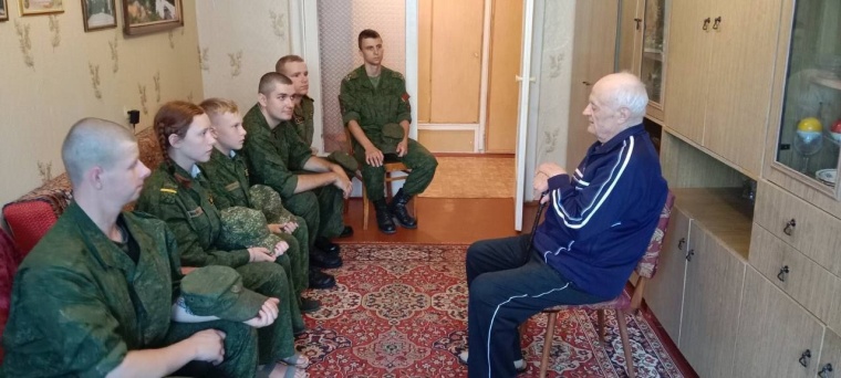 Военнослужащие 3-й гвардейской школы подготовки специалистов танковых и артиллерийских подразделений 72-го гвардейского Объединенного учебного центра подготовки прапорщиков и младших специалистов и воспитанники военно-патриотического лагеря «Вектор» побывали в гостях у ветерана Великой Отечественной войны Василия Степановича Тарасенко.
