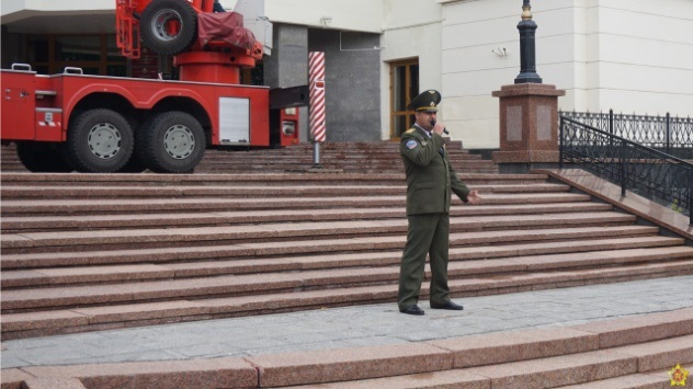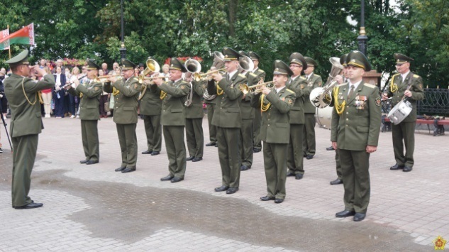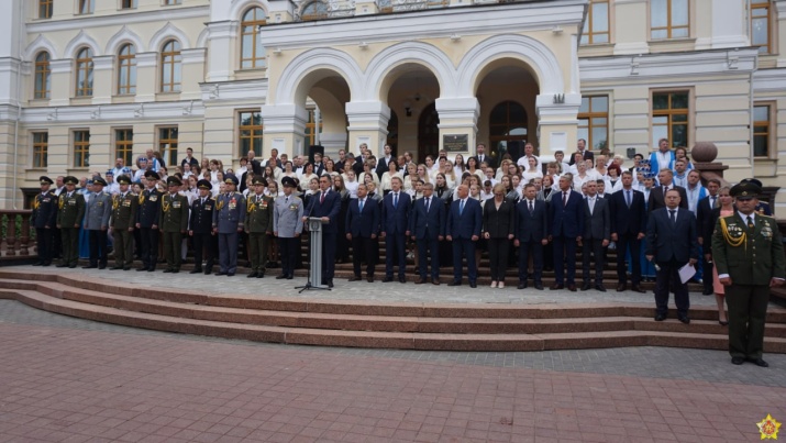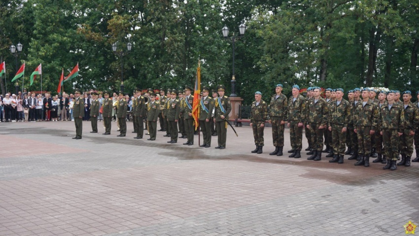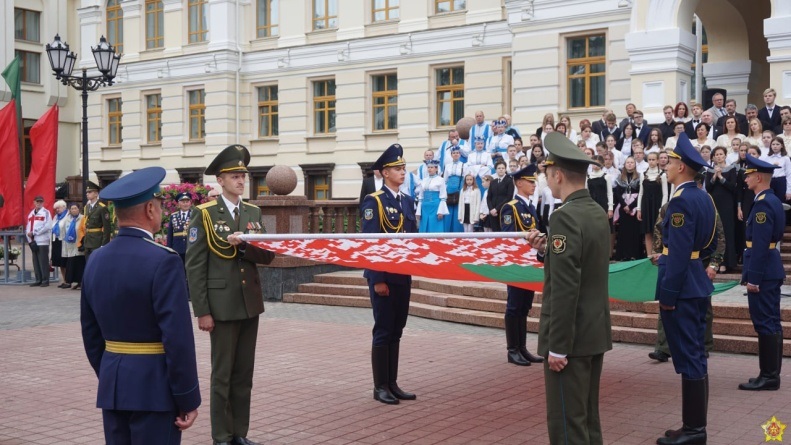 Почетное право вынести флаг было предоставлено военнослужащим 103-й Витебской отдельной гвардейской воздушно-десантной бригады под руководством ветерана войны в Афганистане, председателя областного Совета ОО «Белорусский союз ветеранов войны в Афганистане» подполковника запаса Валерьяна Мацкевича, который в ходе ритуала передал главный символ страны председателю облисполкома Александру Субботину.