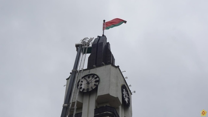 Государственный флаг размером 2 × 4 метра на 56-метровую высоту подняли работники пожарного аварийно-спасательного отряда «Витязь» во время исполнения песни «Флаг моего государства» солистом ВИА «103 регион» гвардии лейтенантом Алексеем Масальским.