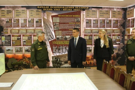 В ходе визита Андрей Иванец ознакомился с экспозицией зала военной истории, выставкой достижений научной деятельности, структурой и задачами роты информационных технологий, посетил классы «Багратион» и класс «Управление боем».