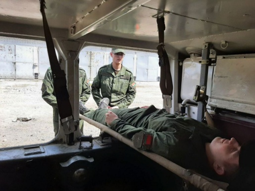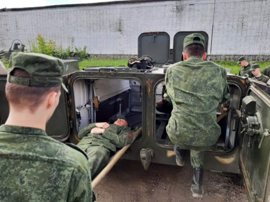 Сегодня на базе 120-й отдельной гвардейской механизированной бригады проводились занятия по извлечению, погрузке раненых в санитарный транспорт и боевую технику с курсантами военно-медицинского института в Белорусском государственном медицинском университете.