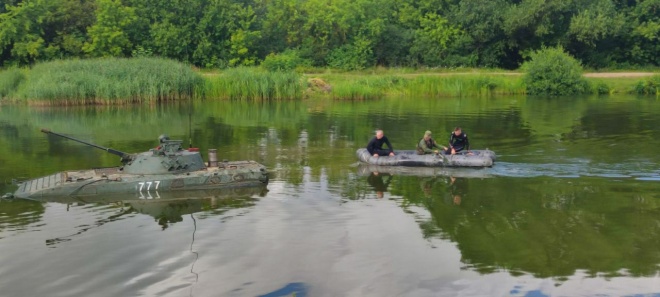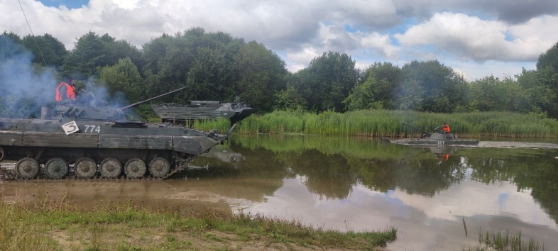 На вододроме 72-го гвардейского Объединенного учебного центра подготовки прапорщиков и младших специалистов с личным составом 120-й гвардейской отдельной механизированной бригады прошли занятия по вождению боевых машин на плаву.