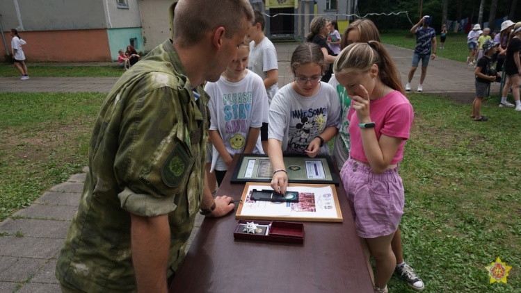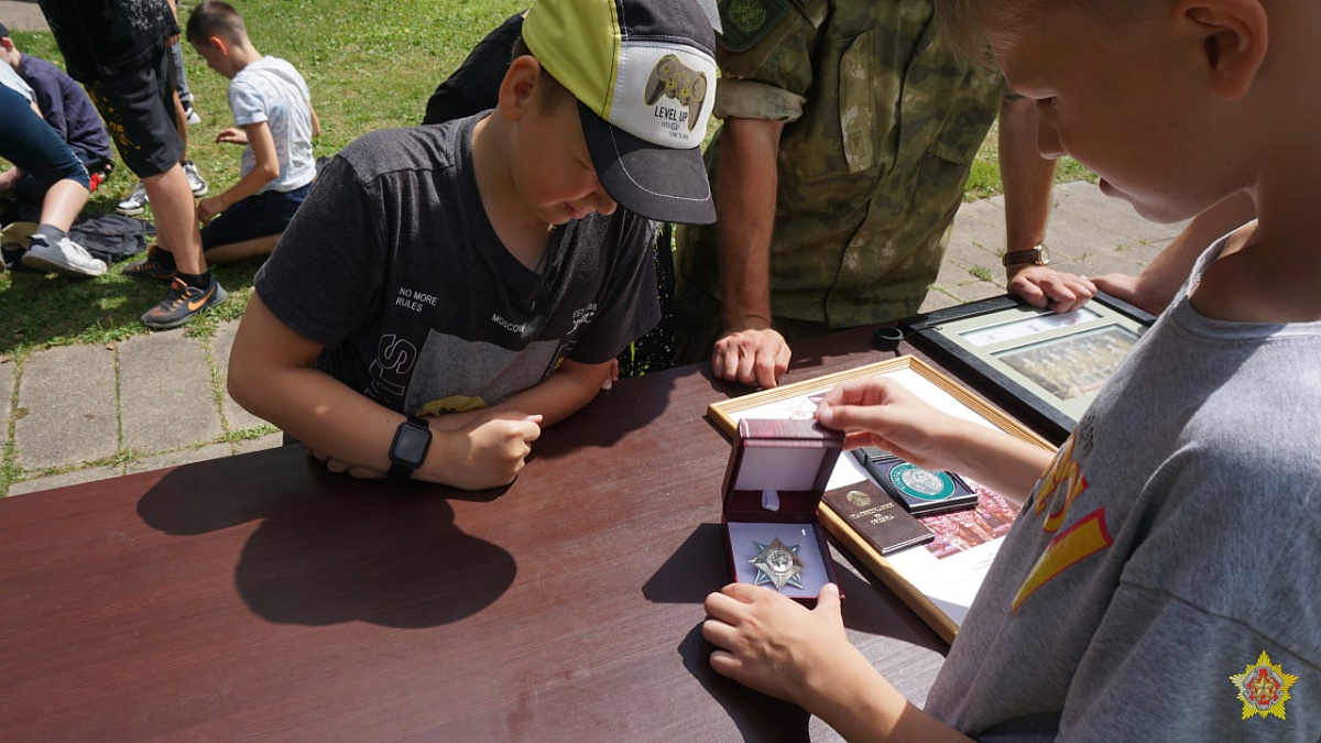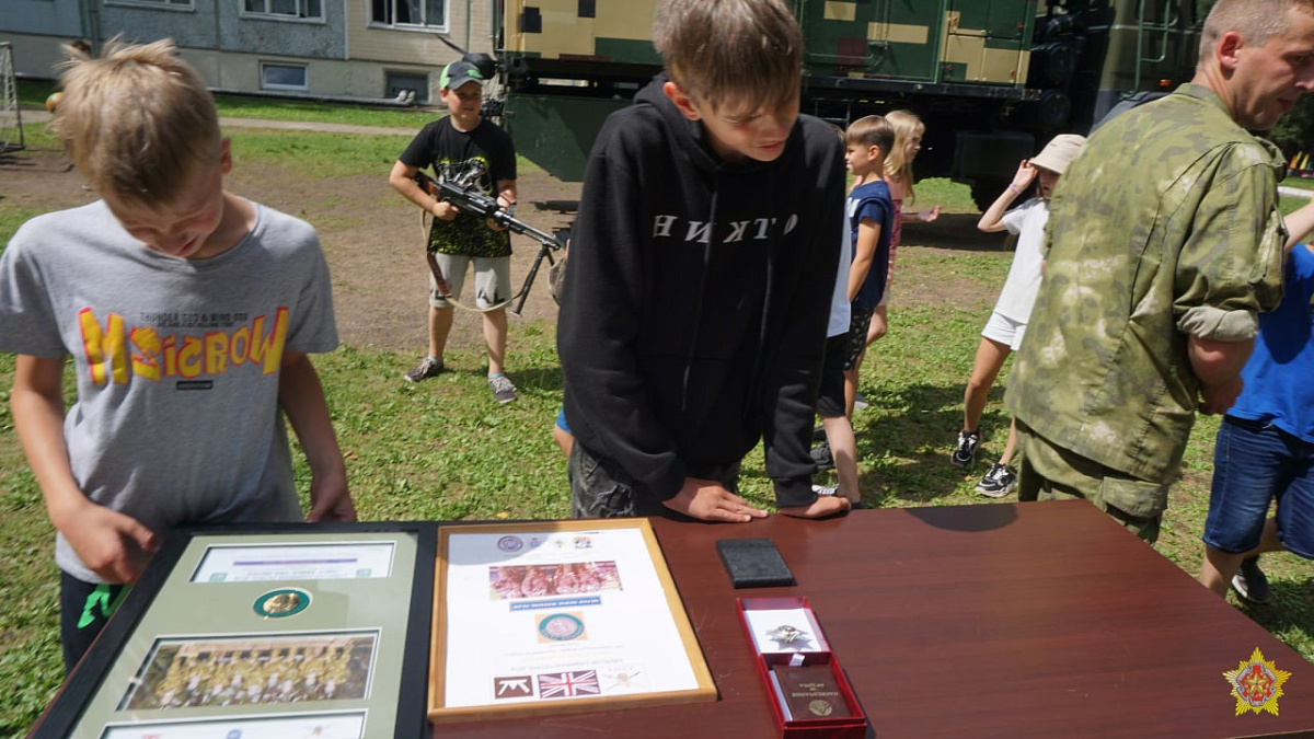 Десантники рассказали о своей службе, боевой подготовке и многочисленных учениях. Командир миротворческой роты гвардии майор Игорь Гиль продемонстрировал детям орден «За службу Родине», который ему лично вручил Президент Республики Беларусь Александр Лукашенко.
