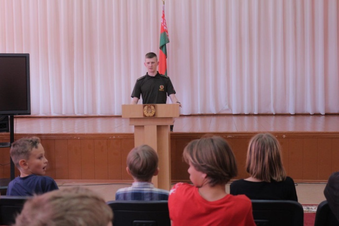Гвардии старший лейтенант Алексей Харламов (11-я отдельная гвардейская механизированная бригада) провел беседу с воспитанниками оздоровительного лагеря «Сябры», организованного в СШ №3 г. Слонима. Гвардеец рассказал школьникам о том, чем занимаются Вооруженные Силы Республики Беларусь. Также офицер акцентировал внимание на том, почему он стал ряды Вооруженных Сил. Свой выбор сделал не случайно, а по зову сердца. Нет ничего дороже спокойной жизни своих родных и граждан нашей страны. И он этим очень гордится.