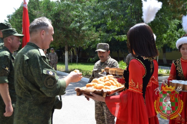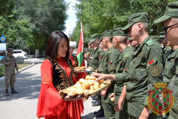 Белорусов встретили, как родных, с оркестром, с традиционными угощениями. Девушки в казахских народных костюмах потчевали дорогих гостей свежим кумысом и местной выпечкой. Белорусскую команду приветствовал заместитель главнокомандующего Сухопутными войсками (по огневому поражению) — командующий ракетными войсками и артиллерией Сухопутных войск Вооруженных сил Республики Казахстан генерал-майор Аскар Жоламанов.