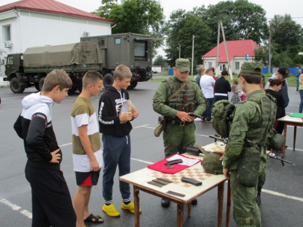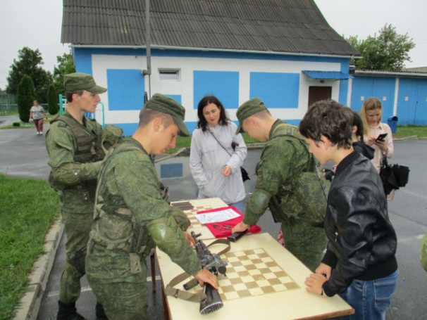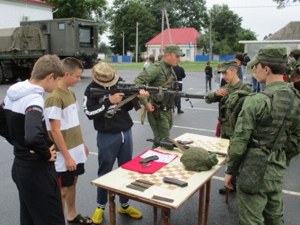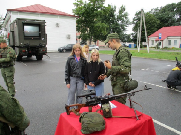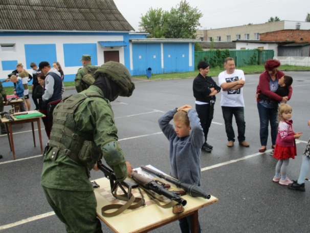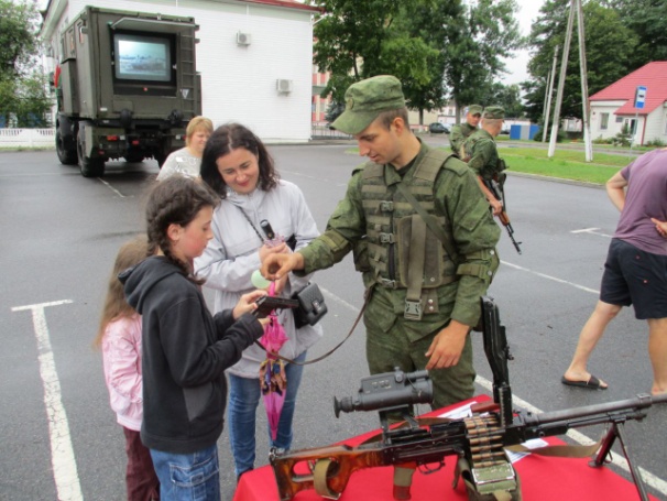 Для жителей города Ельск военнослужащие 11-й гвардейской отдельной механизированной бригады организовали выставку образцов вооружения и обмундирования белорусской армии. В свою очередь представители районной организации БРСМ преподнесли военнослужащим сладкие подарки.