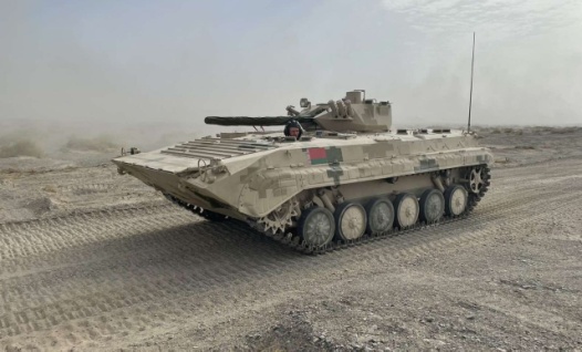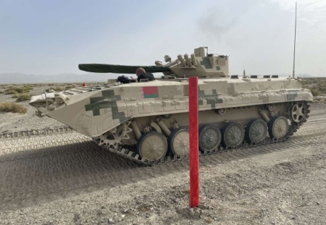 Белорусские мотострелки произвели обкатку китайских боевых машин пехоты на тренировочной трассе конкурса «Суворовский натиск» «Армейских международных игр — 2022» в пустыне Такла-Макан в КНР.