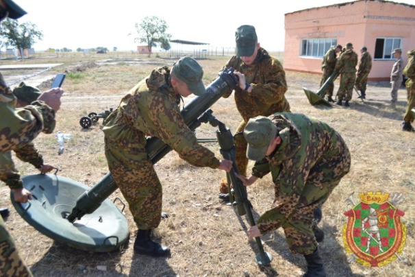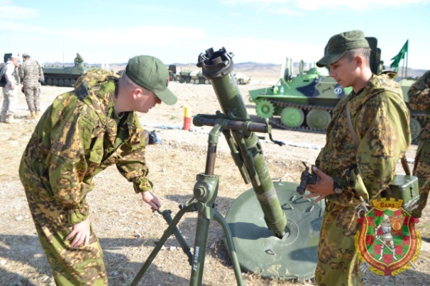 В поселке городского типа Гвардейский Республики Казахстан команды, участвующие в международном конкурсе «Мастера артиллерийского огня», сегодня получили минометные комплексы. В состав комплексов входят тягачи МТ-ЛБ и минометы 2Б11 «Сани». Поскольку на жеребьевке белорусской команде выпал зеленый цвет, то на полигоне, где уже вскоре стартуют состязания, наши военнослужащие принимали МТ-ЛБ соответствующей окраски.