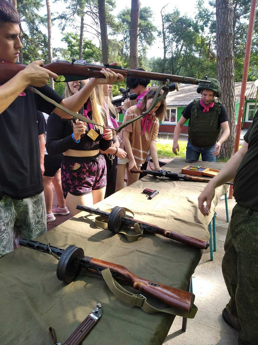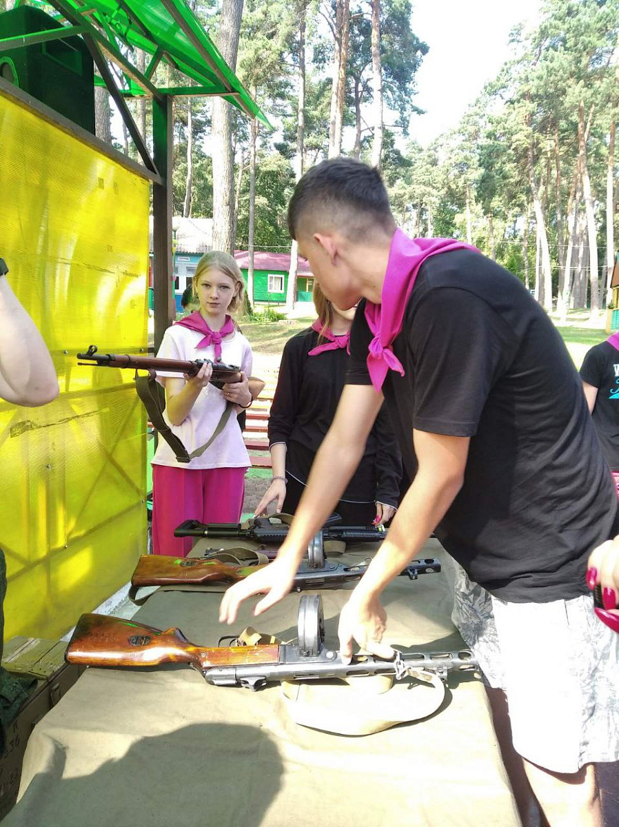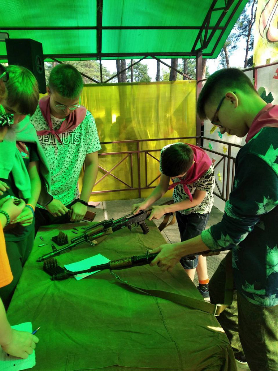 Мальчишки и девчонки преодолевали полосу препятствий, устанавливали минное поле, переносили раненного и оказывали ему первую медицинскую помощь, одевали военный костюм химзащиты, стреляли с пневматического оружия, разбирали и собирали автоматы Калашникова.