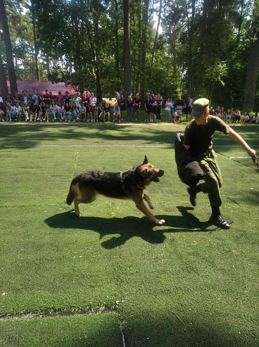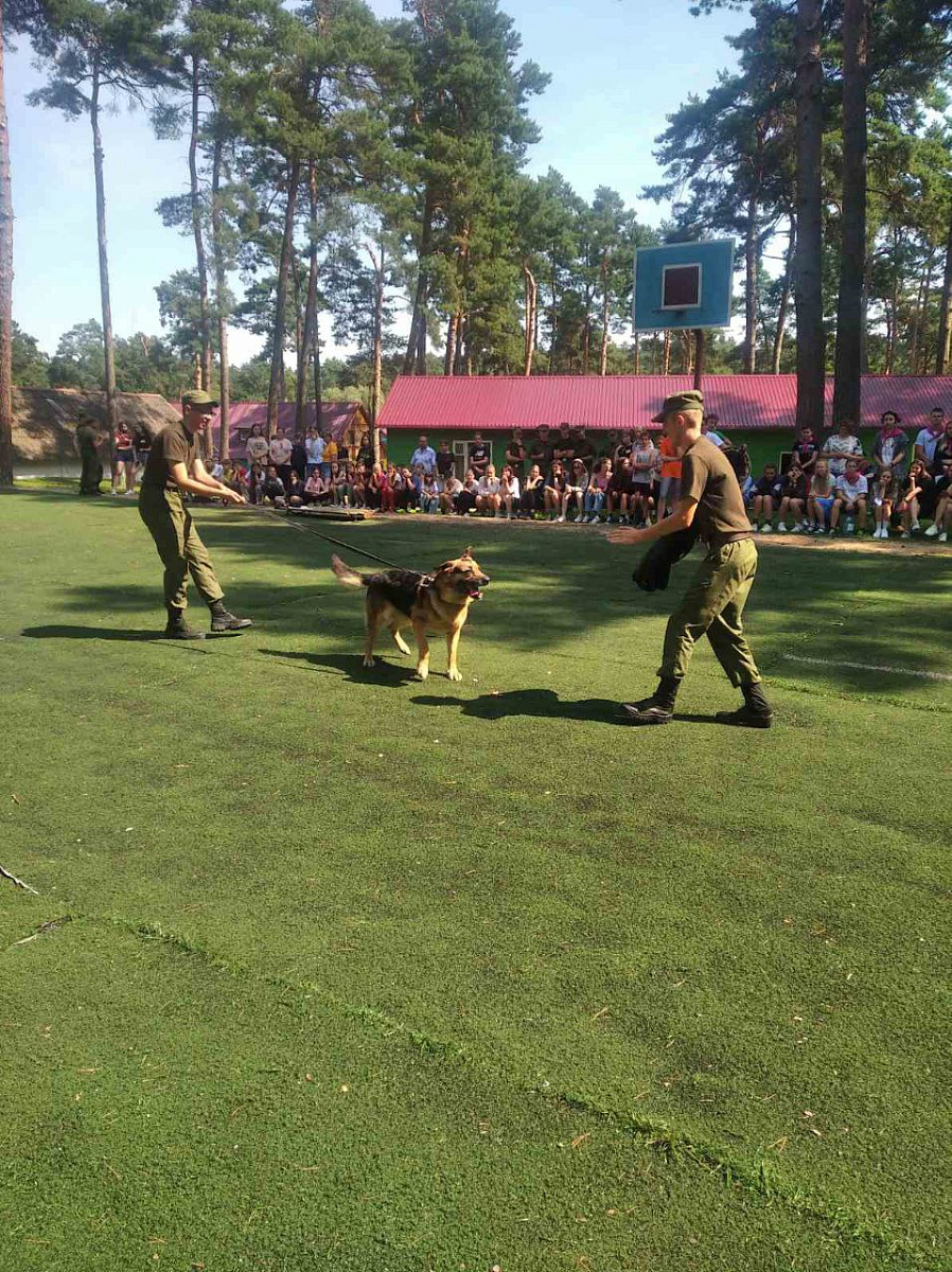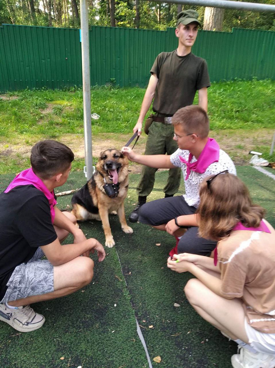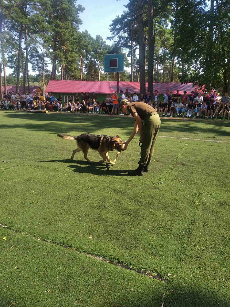 С большим восторгом воспитанники лагеря смотрели на работу служебной собаки.