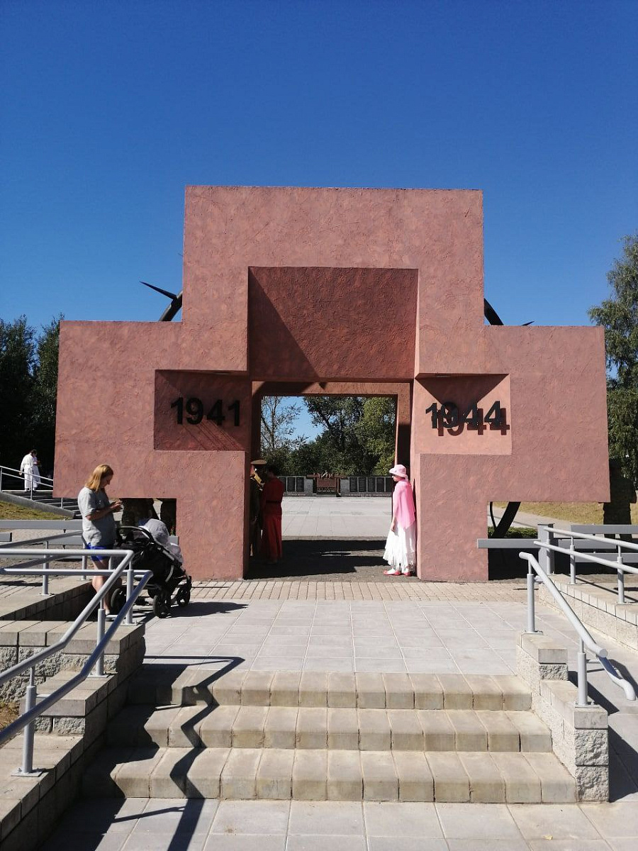 «Урочище Пески» — это место памяти и скорби, где в годы Великой Отечественной войны размещался немецкий пересыльный лагерь советских военнопленных «Дулаг-125». Огромная братская могила. В ней покоятся останки десятков тысяч военнопленных и гражданского населения, замученных и убиты нацистами. Мемориальный комплекс стал символом памяти жертв войны. На месте захоронения прошел митинг-реквием в память о них – наших близких и родных земляков. Не было ни открытия, ни закрытия, только театральная постановка, музыка и молчание. Спектакль был настолько пронизывающим, словно проходил через все тело прямо к сердцу. И минута молчания… В завершении митинга все присутствующие возложили цветы к плите с именами.