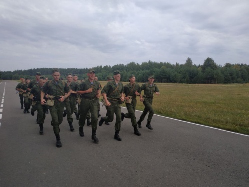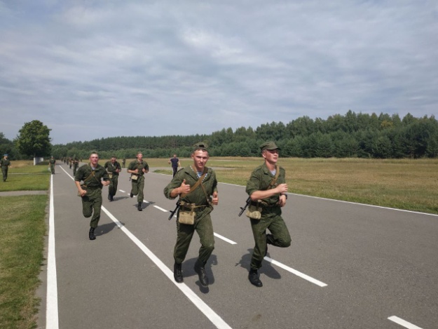 Военнослужащие срочной военной службы учебной десантной роты 307-й гвардейской школы подготовки специалистов мотострелковых и десантных подразделений 72-го гвардейского Объединенного учебного центра подготовки прапорщиков и младших специалистов совместно с офицерами подразделения совершили марш-бросок на 5 километров.