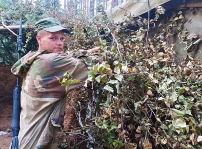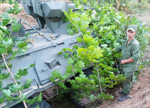 Бойцы совершили марш в район расположения войск и приступили к маскировке мест проживания и своих боевых машин — танков и БТР-82А, а также к охранению района.