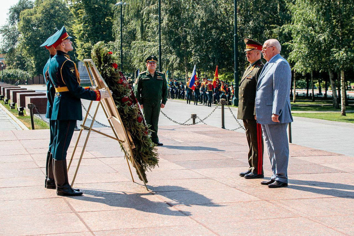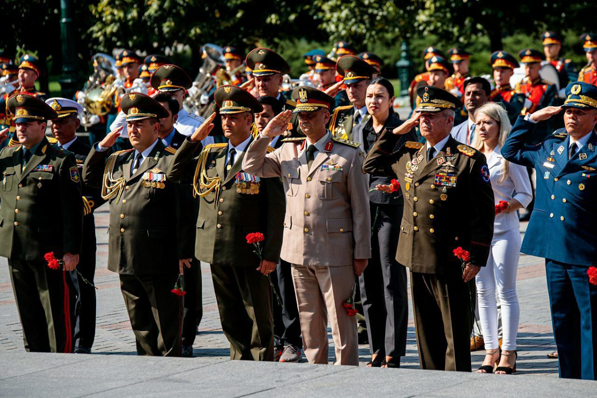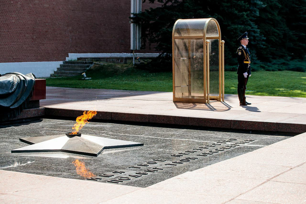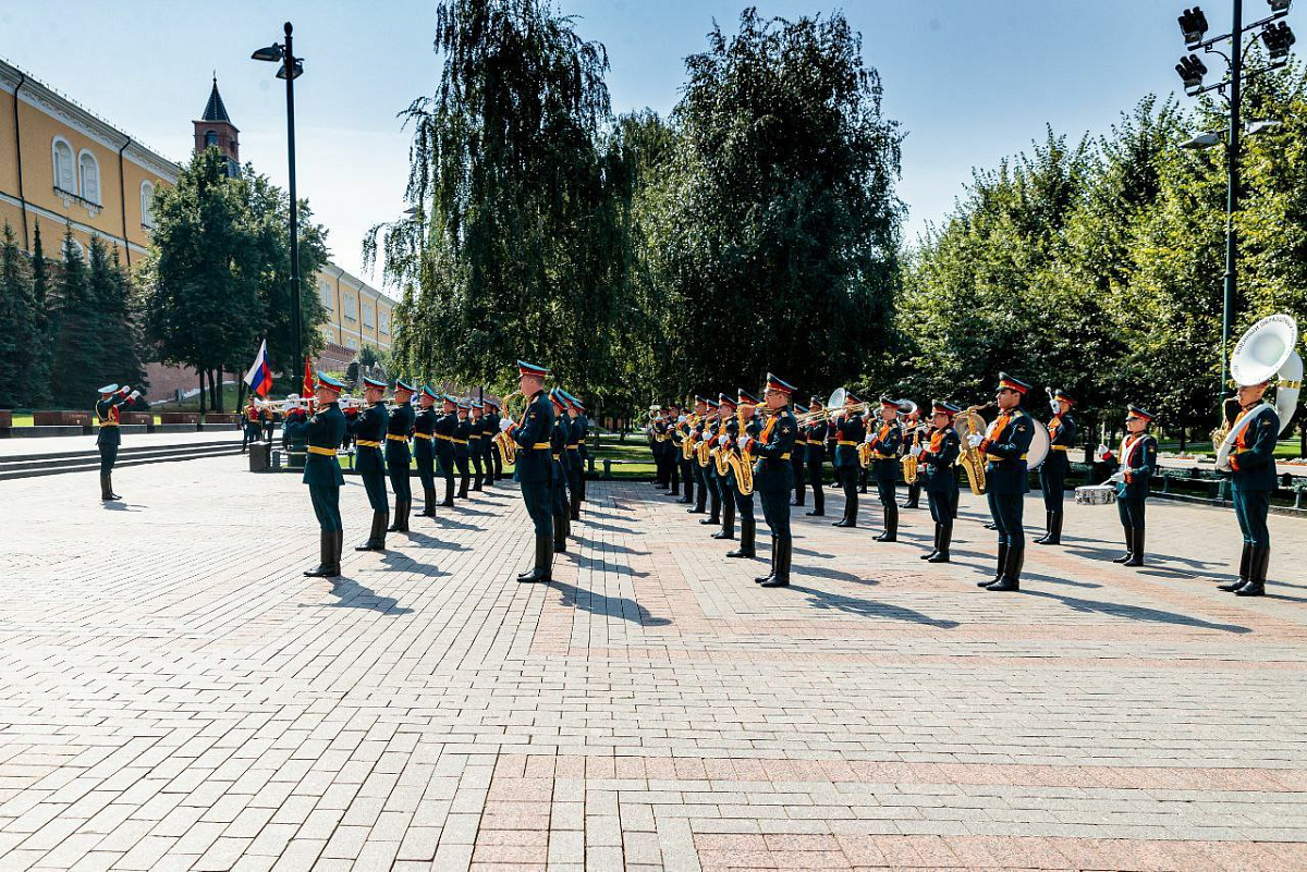 Руководители военно-музыкального фестиваля «Спасская башня» и представители оркестров-участников почтили память погибших воинов у Могилы Неизвестного Солдата близ Кремлевской стены в Александровском саду.