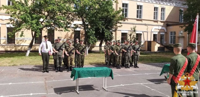 На военно-транспортном факультете в Белорусском государственном университете транспорта в торжественной обстановке были приведены к Военной присяге студенты, которые прошли обучение по программе офицеров запаса и успешно освоили военно-учетные специальности «Применение подразделений и воинских частей по восстановлению и строительству железнодорожных путей», «Применение дорожно-строительных подразделений, воинских частей и соединений».