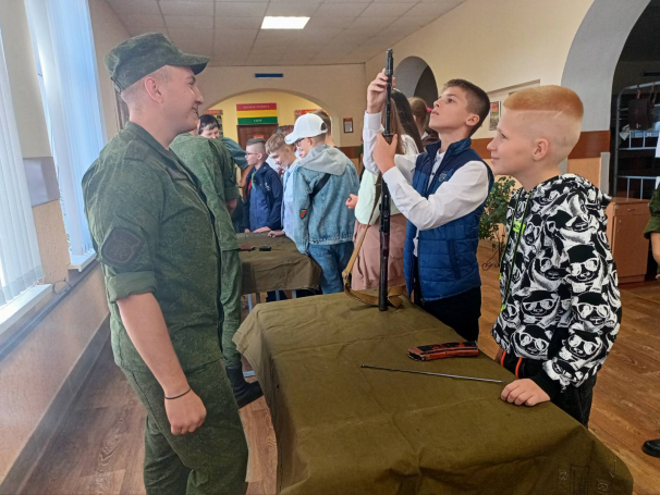 В День знаний военнослужащие 85-й бригады связи (линейной) приняли у себя в гостях учащихся 7-го «Д» класса ГУО «Гимназии №5» г. Барановичи в целях развития у подростков гражданственности и патриотизма, формирования чувства гордости за Республику Беларусь, понимания личной причастности к защите Отечества, а также популяризации воинской службы.