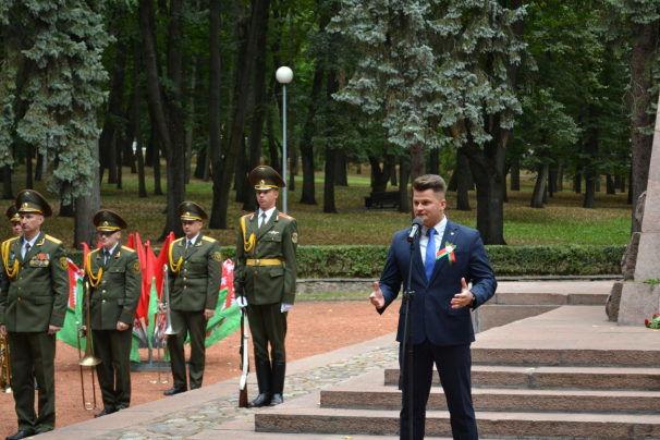 На митинге выступил первый секретарь ЦК ОО «Белорусский республиканский союз молодежи» Александр Лукьянов. В своем выступлении он поздравил всех с юбилеем образования молодежного союза и напомнил еще раз о героическом подвиге Марата Казея.