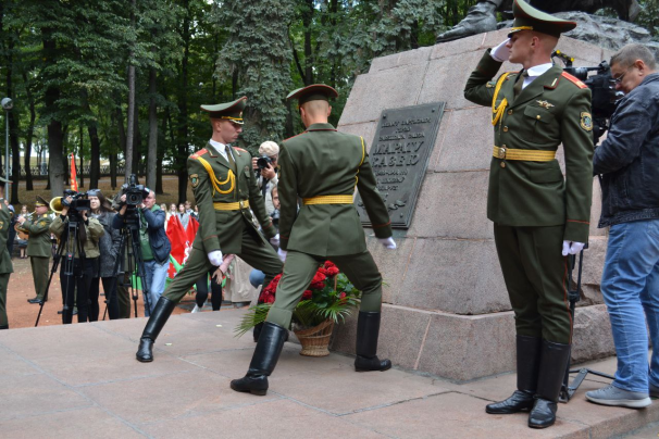 Военнослужащие Минской военной комендатуры приняли участие в торжественном митинге, посвященному 20-летию образования ОО «БРСМ» в сквере имени Марата Казея.