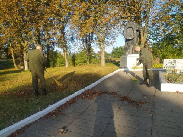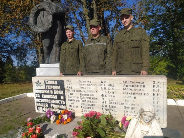 Личный состав одного из зенитных ракетных дивизионов в/ч 30151 порядок у братской могилы вблизи населенного пункта Пятевщина.