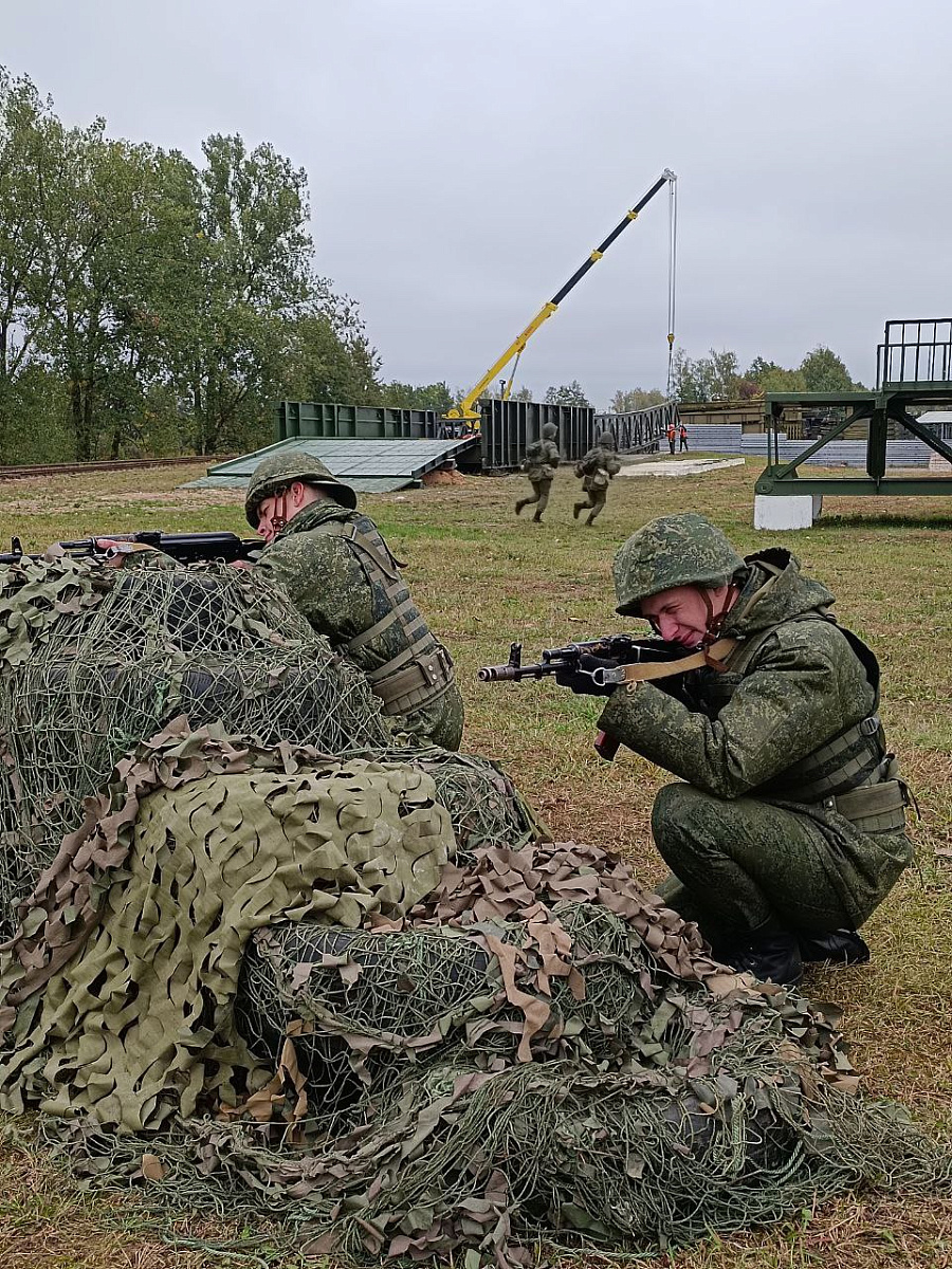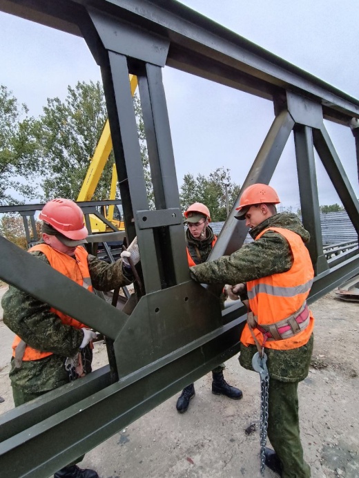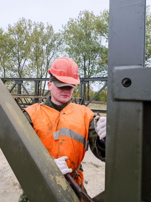На старшего монтажника ефрейтора Александра Савельева и монтажников рядовых Ивана Войтко и Илью Арико были возложены обязанности по сборке моста БАРМ, с которыми военнослужащие справились на «отлично».