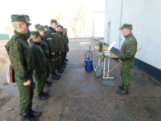 На территории воинской части были развернуты учебные точки, на которых был рассмотрен ряд учебных вопросов: особенности эксплуатации штатных образцов ВВСТ в зимнем режиме эксплуатации, требования безопасности при выполнении шиномонтажных работ, порядок оказания первой медицинской помощи при получении травм, ожогов, отравлений и другие.