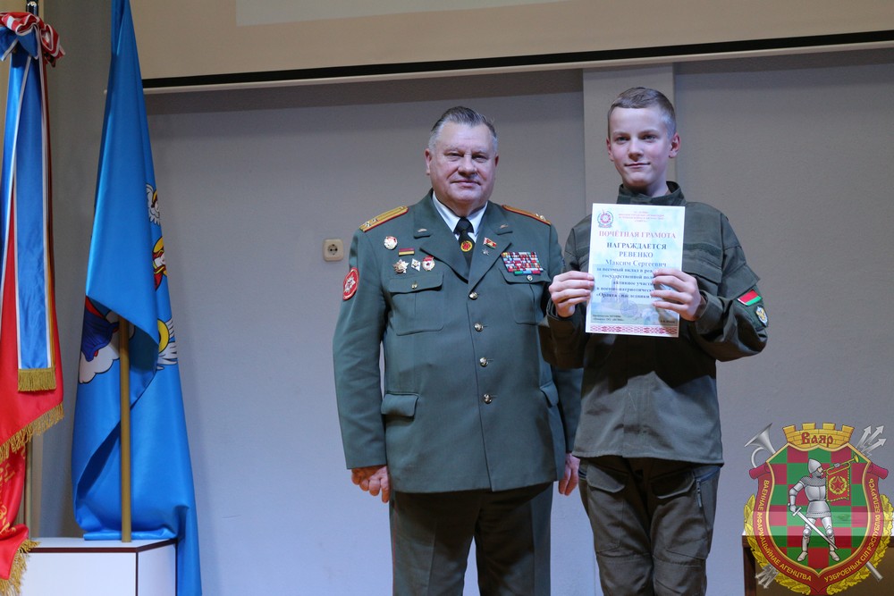 На торжественном собрании от имени Минской городской организации ветеранов войны в Афганистане «Память» общественного объединения «Белорусский союз ветеранов войны в Афганистане» полковник в отставке Владимир Шоков вручил памятные медали активистам военно-патриотического воспитания. Заслуженную награду получил и руководитель военно-патриотического клуба Партизанского района «Орлята — наследники Победы» Сергей Щерба.