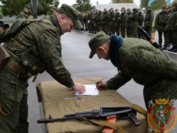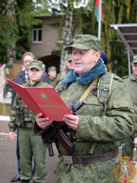 Сегодня вам предстоит принять Военную присягу, дать клятву военнослужащего на верность Родине и белорусскому народу. Именно в этот день с вами в едином строю прапорщики и офицеры, Боевое знамя воинской части.