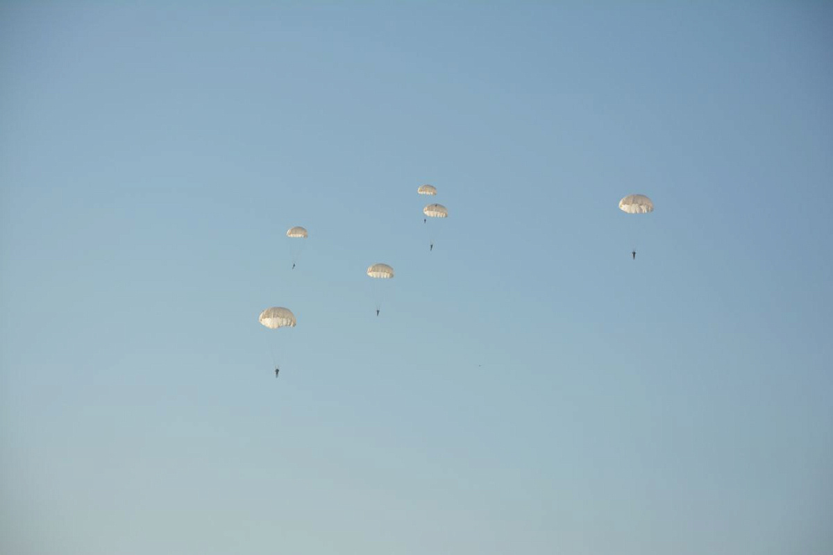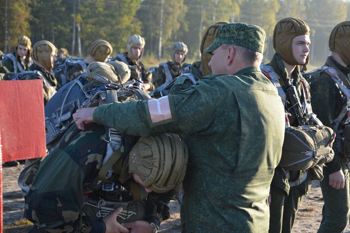 На полигоне Брестский в ходе плановых занятий по боевой подготовке военнослужащие 38-й Брестской отдельной гвардейской десантно-штурмовой бригады совершили прыжки с парашютом из самолета Ан-2.
