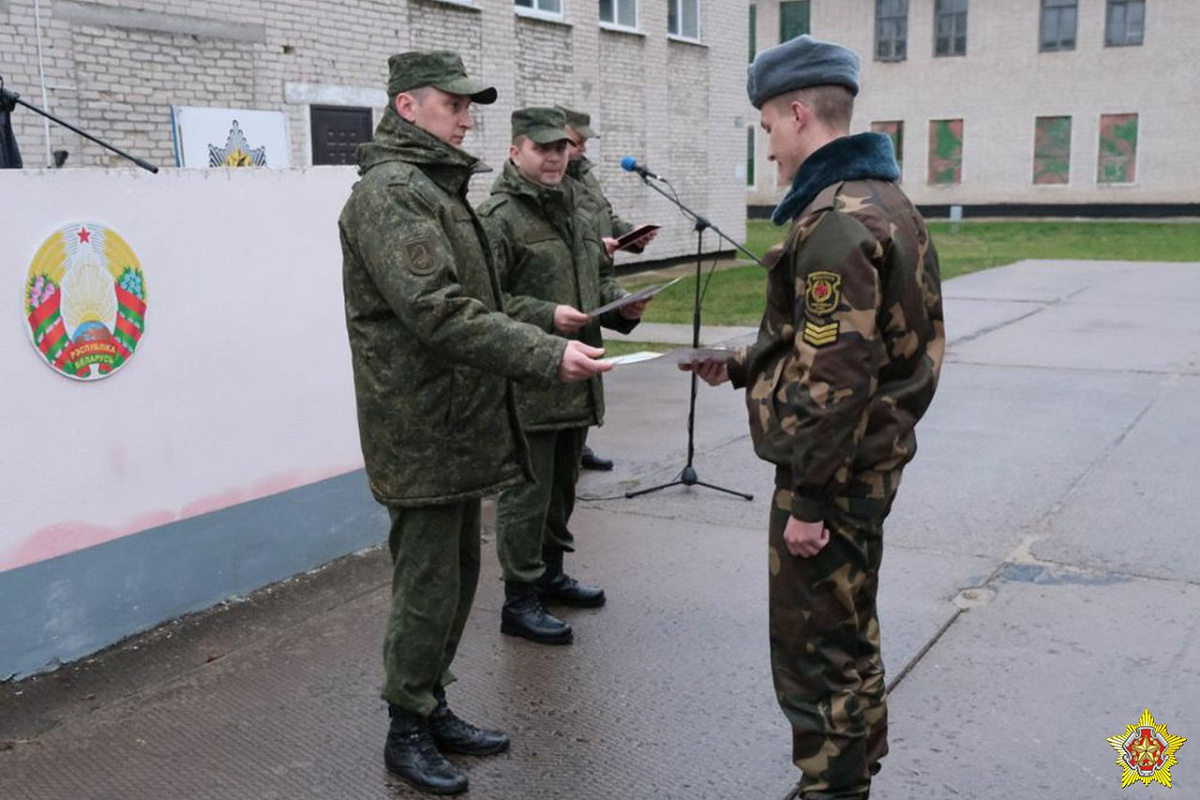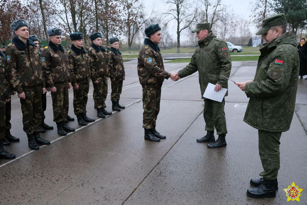 Командир полка подполковник Виктор Малуха поблагодарил солдат и сержантов за службу. А лучшие военнослужащие получили из рук командира грамоты, ценные подарки и футболки из коллекции «Мерч Первого».