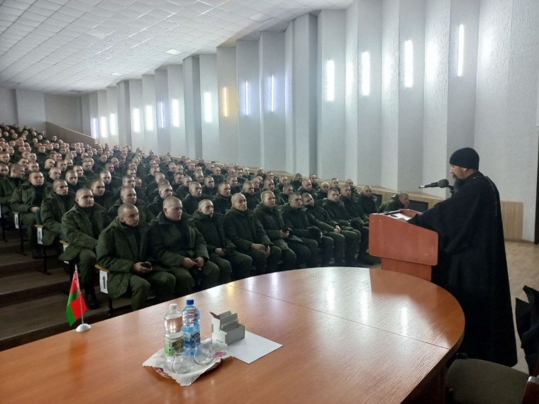 В рамках проведения воспитательной работы прошла встреча военнослужащих нового пополнения 307 шпс 72 ОУЦ с представителем Белорусской Православной Церкви отцом Андреем.