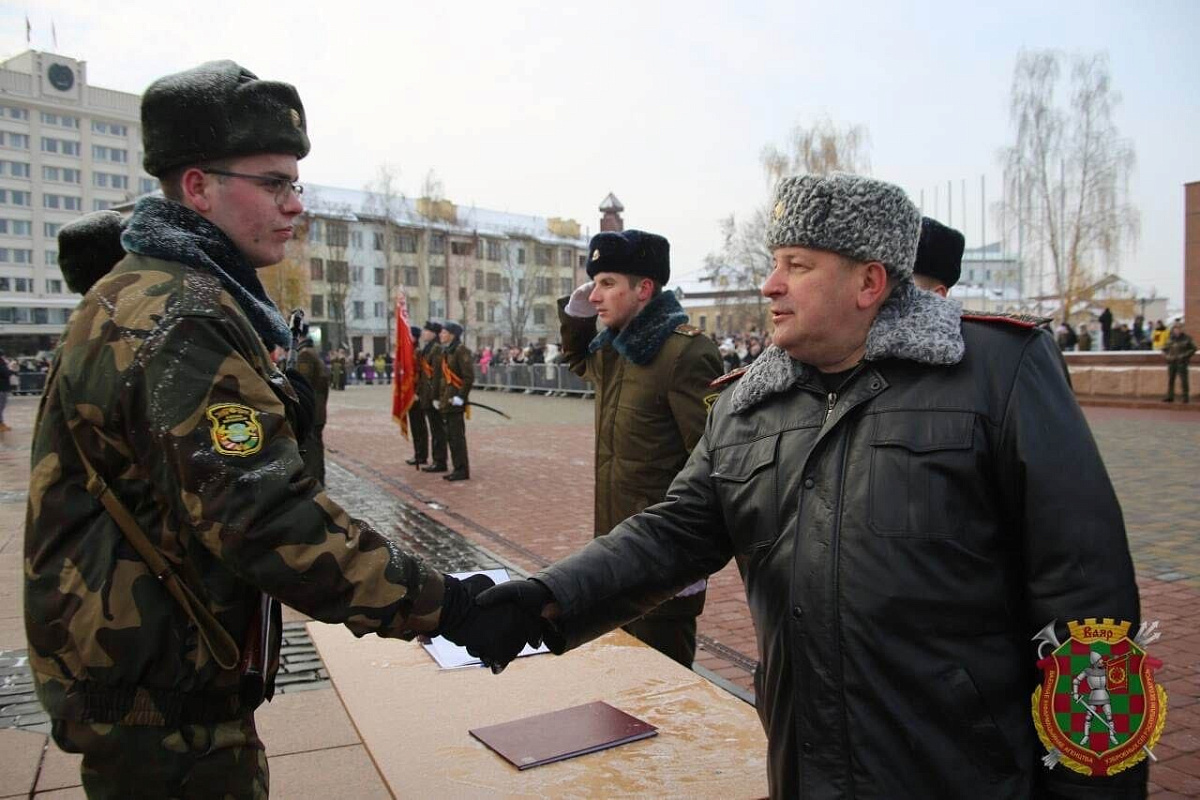 С принятием Военной присяги новобранцев поздравил заместитель Министра обороны Республики Беларусь генерал-майор Андрей Жук. Затем слово взял заместитель председателя Гродненского областного исполнительного комитета Андрей Жук. Со словами напутствия на отличную службу к военнослужащим обратился ветеран Вооруженных Сил старший прапорщик в отставке Иван Григорьев. С материнским наказом честно исполнять свой воинский долг слово взяла мать солдата Оксана Головина, а ее сын рядовой Данила Головин от имени нового пополнения обещал настойчиво овладевать военным делом, хранить и приумножать воинские традиции, быть достойными звания защитника Отечества. Новое пополнение благословил на ратный труд священнослужитель Гродненской православной епархии отец Игорь Данильчик.