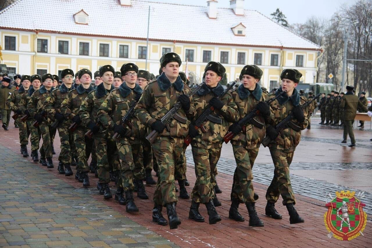 Более 220 новобранцев срочной службы и военнослужащих, поступивших в добровольном порядке на службу по контракту, с оружием в руках выстроились под сенью прославленных Боевых Знамен 6-й отдельной гвардейской механизированной и 557-й инженерной бригад, 74-го отдельного полка связи Западного оперативного командования, 1-го зенитного ракетного полка Военно-воздушных сил и войск противовоздушной обороны и других воинских частей Гродненского гарнизона.