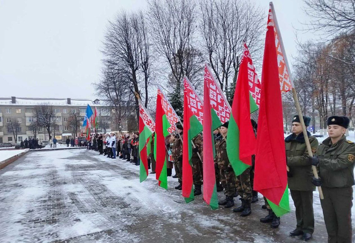 В Борисове у памятника «Жертвам фашизма» в рамках республиканской патриотической акции «Символ единства» прошел митинг, в котором приняли участие военнослужащие гарнизона, представители общественности и Республиканского общественного объединения «Патриоты Беларуси».