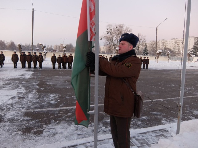 Государственный флаг Республики Беларусь поднял лучший командир зенитной ракетной батареи по итогам 2021/2022 учебного года капитан А.А. Бурак.