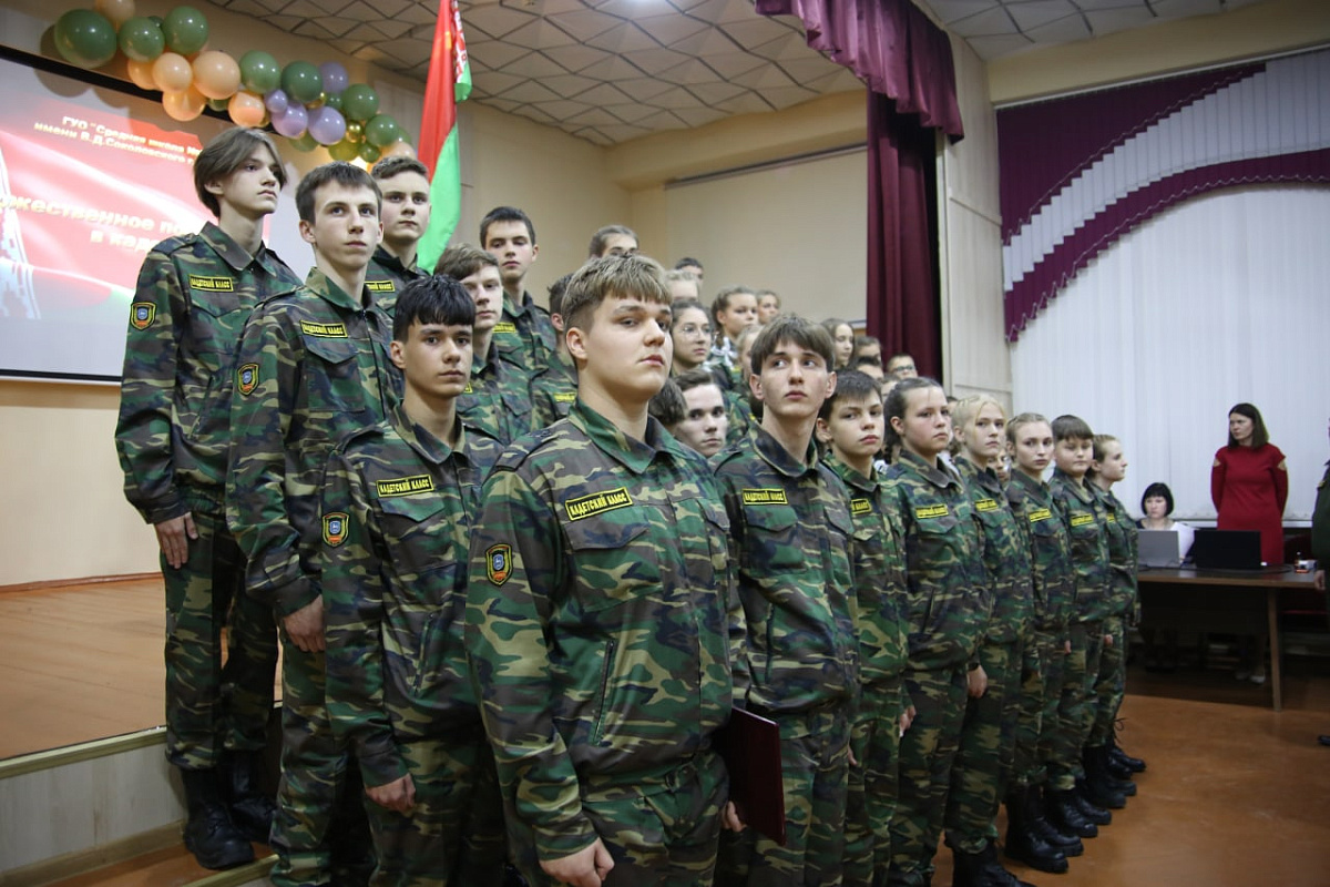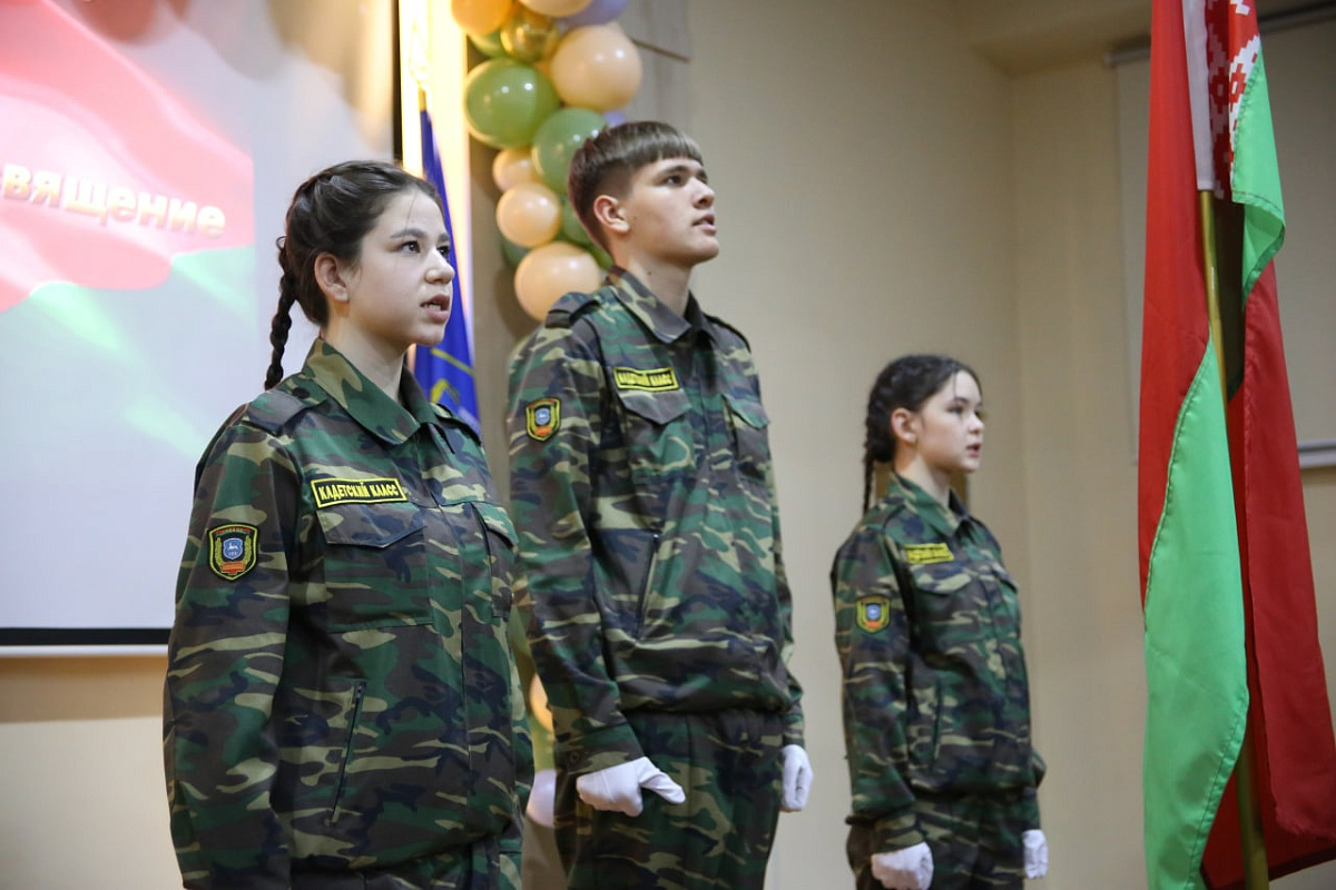 В средней школе № 28 города Гродно имени В.Д. Соколовского прошла торжественная церемония посвящения в кадеты. В этом знаковом мероприятии приняли участие, поздравили и напутствовали кадет представитель Западного оперативного командования полковник Алексей Бартошевич, начальник направления идеологической работы и социальной защиты военного комиссариата Гродненской области полковник Виталий Садовенко, начальник направления призыва на военную службу этого военного комиссариата полковник Александр Венскович, заместитель начальника военного факультета в ГрГУ имени Я.Купалы по идеологической работе подполковник Евгений Скиба, заместитель командира 350-й группы артиллерии 6 омбр по идеологической работе подполковник Михаил Трепашко, первый секретарь Гродненского городского комитета Белорусского республиканского союза молодежи Артём Макаревич, председатель совета Ленинской районной ветеранской организации города Гродно подполковник в отставке Владимир Кувшинов и другие почетные гости.